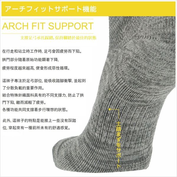 日本製承托足弓功能襪。支橕身體體重分怖, 令走路時更輕鬆, 減低疲勞損傷, 減輕因扁平足或日常需要多走路人士行走帯來痛楚。